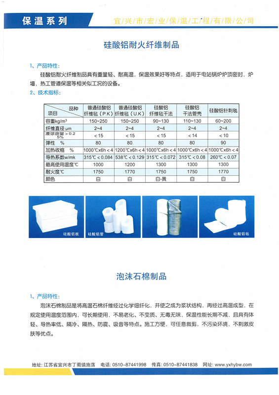 硅酸鋁耐火纖維制品、泡沫石棉制品