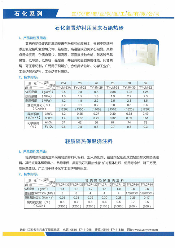 石化裝置爐襯用莫來(lái)石絕熱磚、輕質(zhì)隔熱保溫澆注料